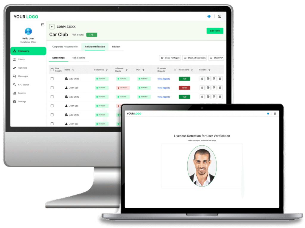 Onboarding, screening, KYC, compliance, and monitoring.